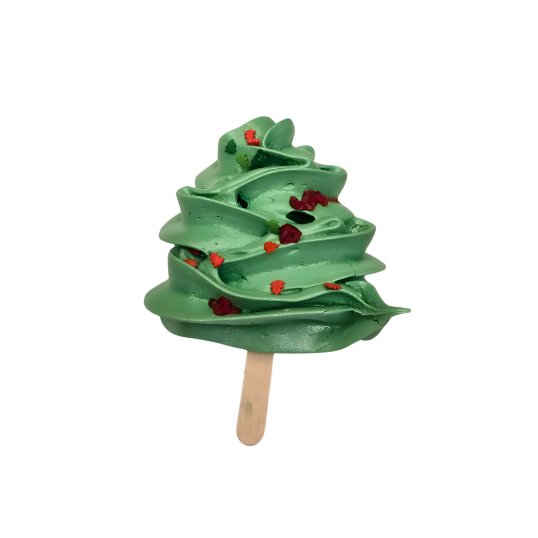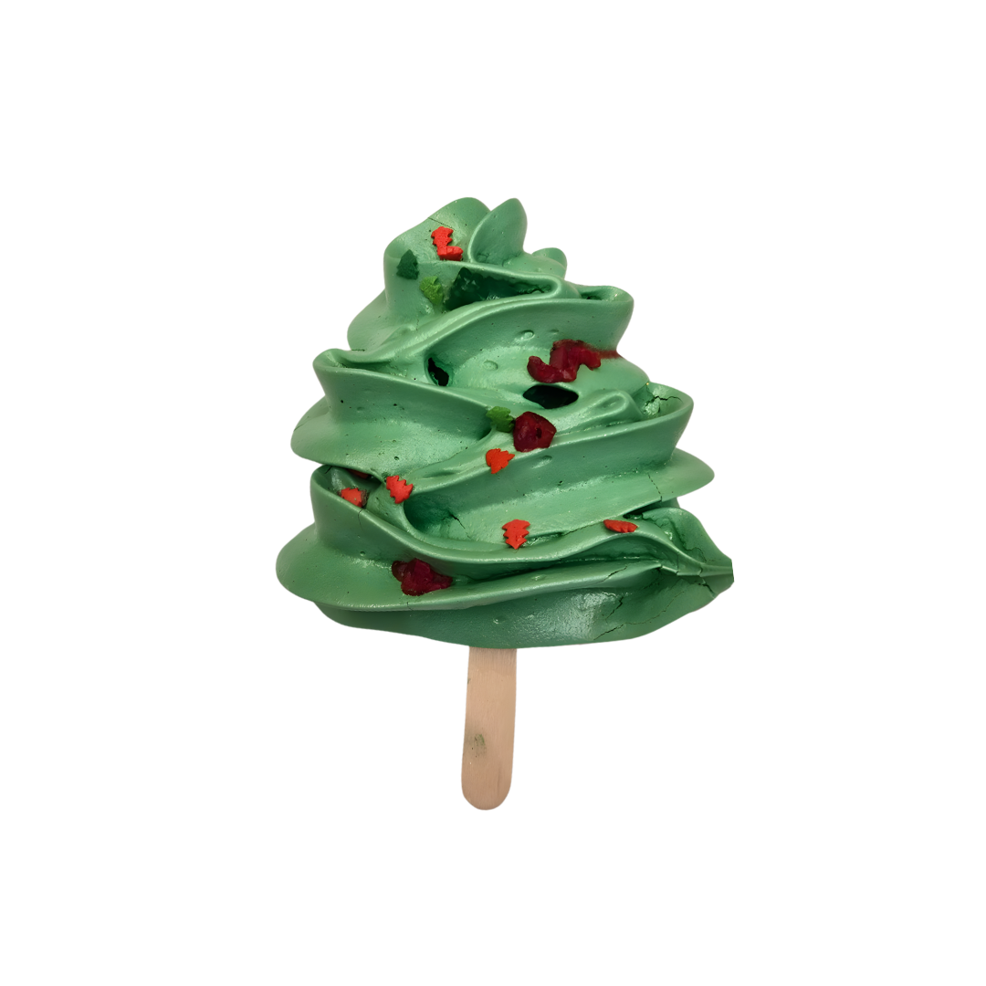 Swirled into a tall tree shape, tinted festive green and sprinkled with tiny red and green decorations, it’s as pretty as it is delicious.