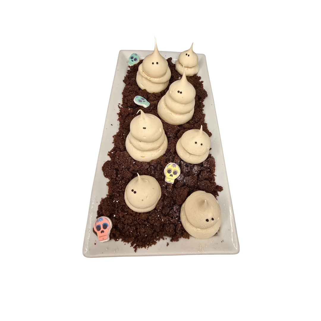 Meet the most adorable ghosts you’ll ever want to bite into! Our handmade Ghost Meringues are crisp on the outside, melt-in-your-mouth soft on the inside, and shaped like the sweetest little spirits haunting your dessert table.