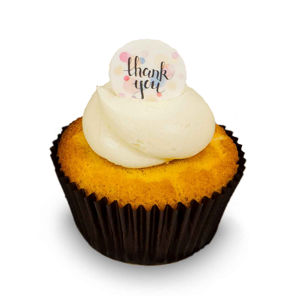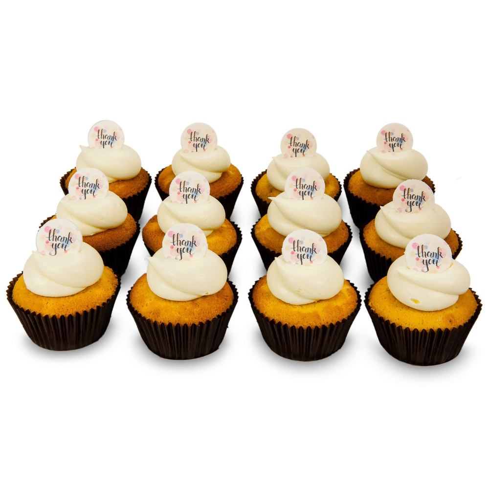 12 of our beautiful cupcakes topped with printed "Thank You" designed tokens - now everyone will know how thankful you really are :)