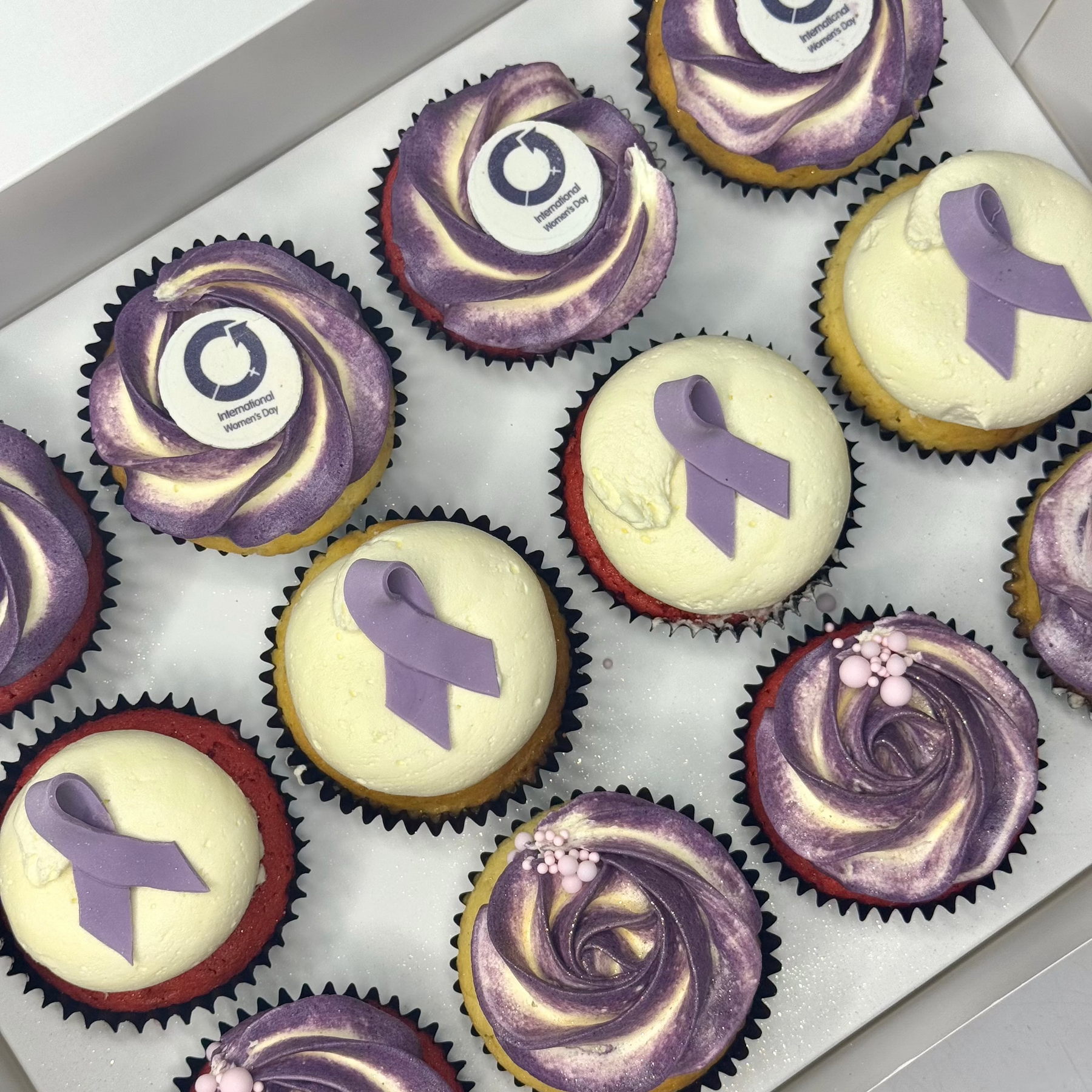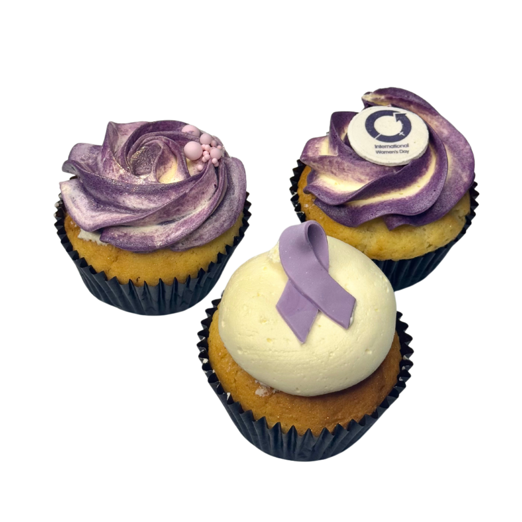 Celebrate the strength, resilience, and beauty of women with our Unstoppable Women's Delights! This special collection features a variety of delicious cupcakes, each crafted with care and adorned in empowering shades of purple, gold, and soft pastels.