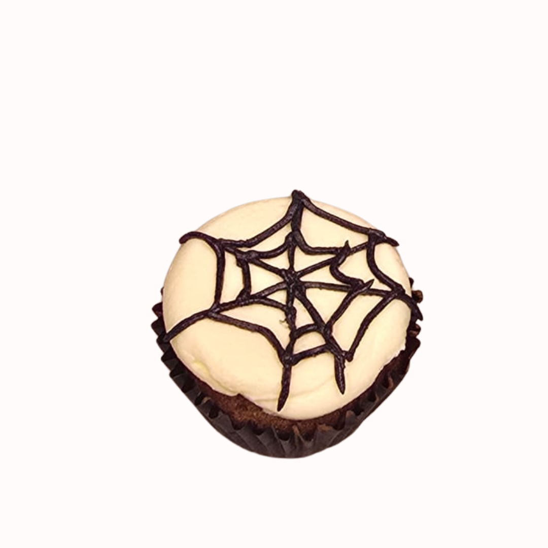 Our Wicked Web Mini features a swirl of velvety vanilla frosting topped with an intricate dark chocolate spiderweb. Elegant yet eerie, this little showstopper brings Halloween magic to every dessert table. Ideal for party platters, spooky soirées, or gifting — it’s a bite-sized treat that’s wickedly irresistible.